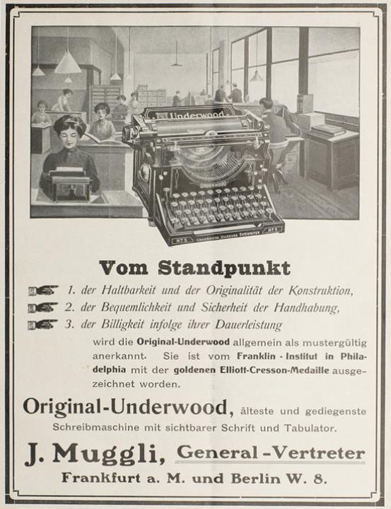 Next to literature on the history of technology, of the typewriter and the office, the Archive holds patent letters, textbooks and instruction manuals as well as historical postcards, letters, photographs and various kinds of advertising (leaflets and brochures, advertising stamps, newspaper ads, posters and signs, promotional gifts).