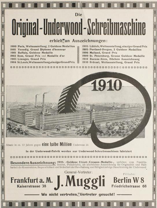 Werbeanzeige für Schreibmaschine Underwood monochrom