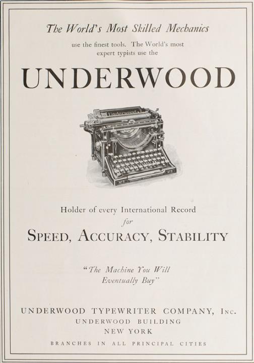 Werbeanzeige für Schreibmaschine Underwood monochrom