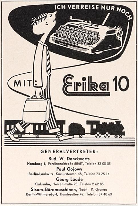 Werbeanzeige für Schreibmaschine Erika 10 monochrom