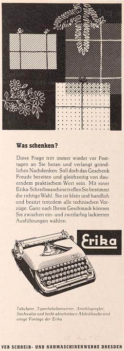 Werbeanzeige für Schreibmaschine Erika monochrom, zwei Exemplare