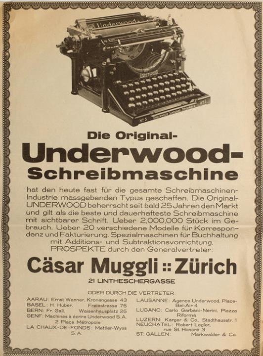 Werbeanzeige für Schreibmaschine Underwood monochrom, zwei Exemplare