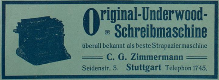 Werbeanzeige für Schreibmaschine Underwood monochrom