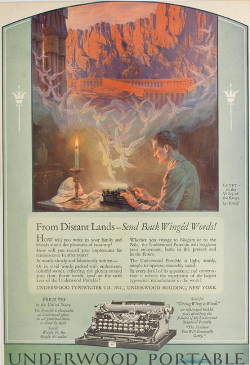 Werbeanzeige für Schreibmaschine Underwood polychrom