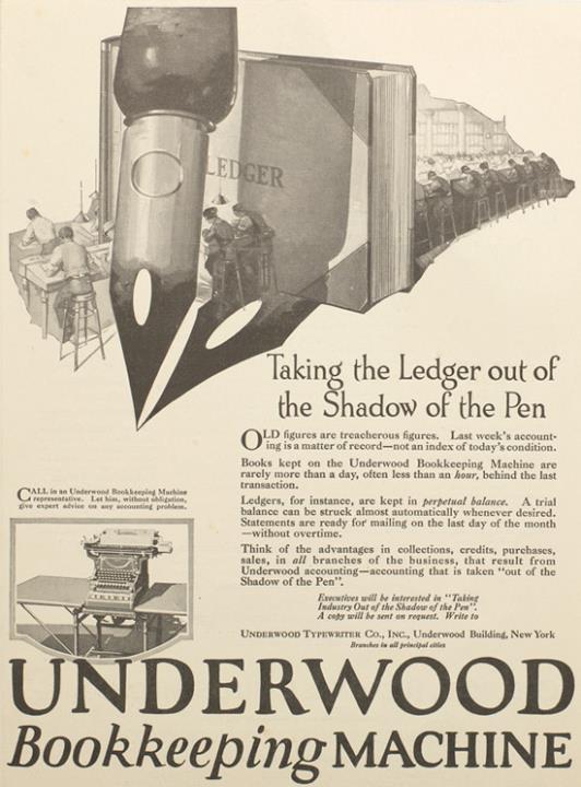 Werbeanzeige für Buchungsmaschine Underwood monochrom