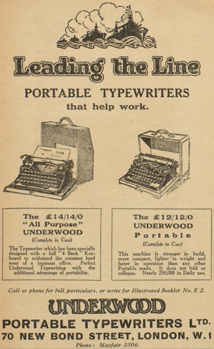 Werbeanzeige für Schreibmaschine Underwood; auf Karton aufgeklebt monochrom