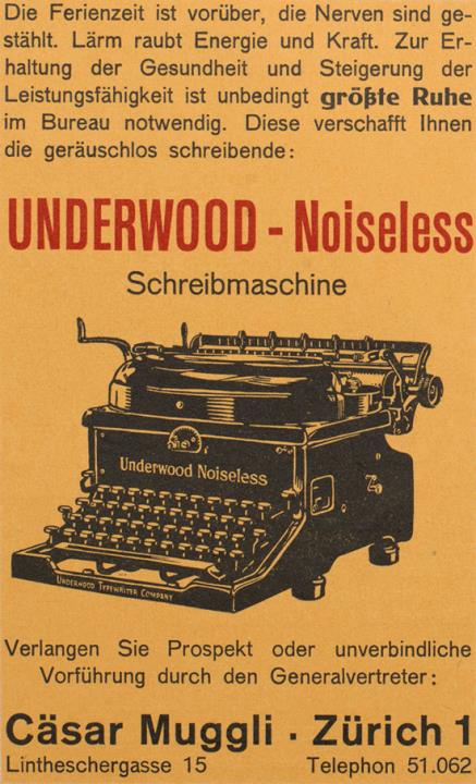 Werbeanzeige für Schreibmaschine Underwood Noiseless monochrom