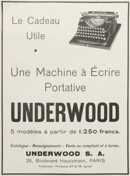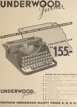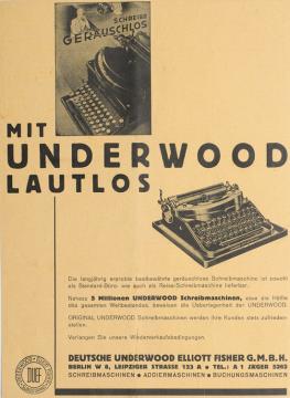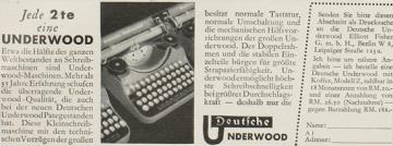 Werbeanzeige für Schreibmaschine Underwood monochrom