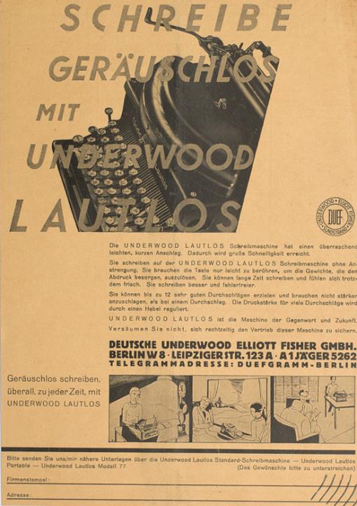 Werbeanzeige für Schreibmaschine Underwood monochrom