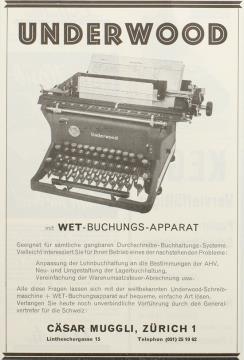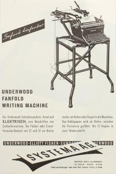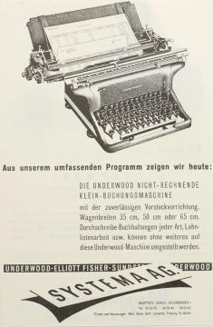 Werbeanzeige für Schreib- und Buchungsmaschine Underwood monochrom