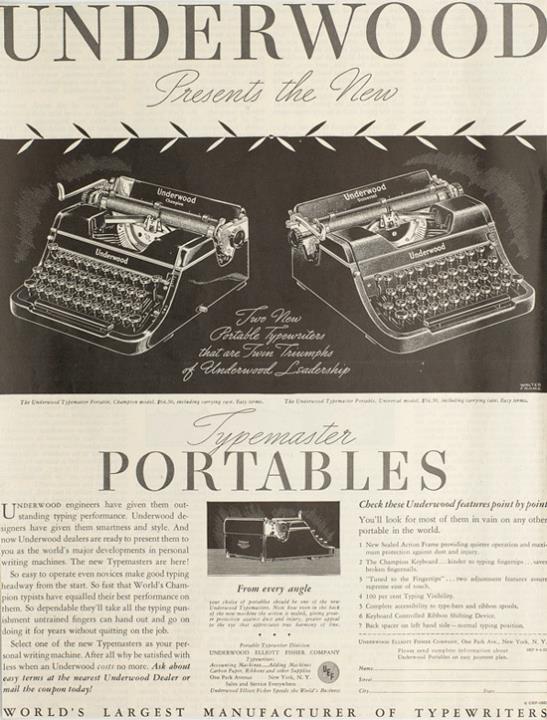 Werbeanzeige für Schreibmaschine Underwood monochrom