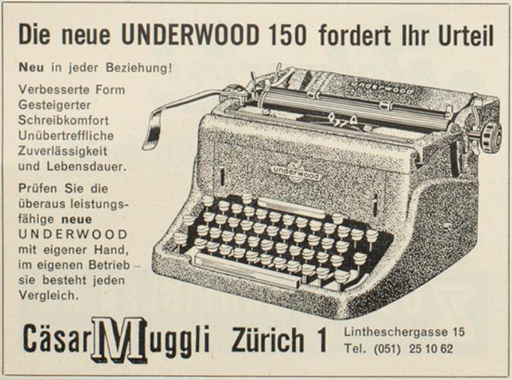 Werbeanzeige für Schreibmaschine Underwood monochrom