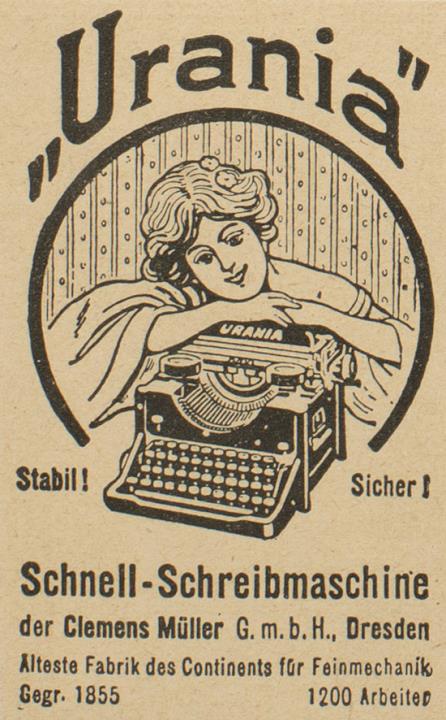 Werbeanzeige für Schreibmaschine Urania monochrom, neun Exemplare