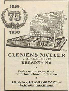 Werbeanzeige für Schreibmaschinenhersteller Clemens Müller AG monochrom