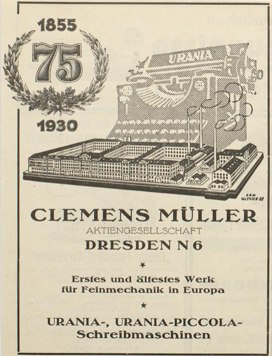 Werbeanzeige für Schreibmaschine Urania monochrom