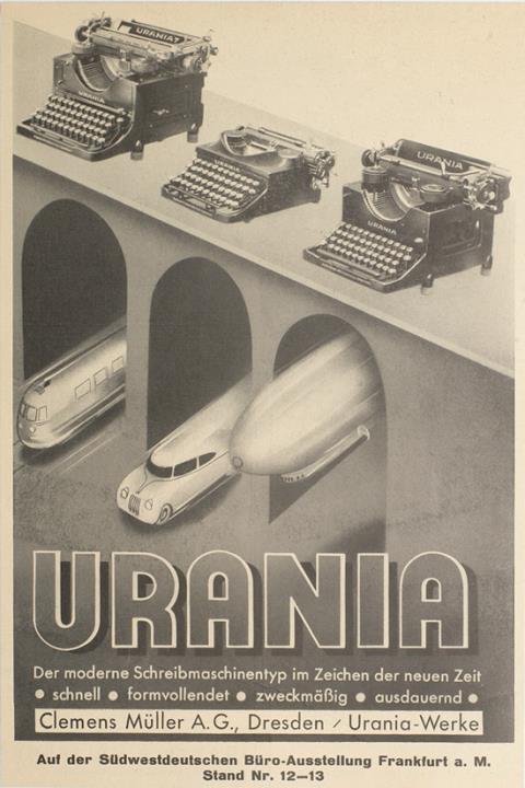 Werbeanzeige für Schreibmaschinen Urania monochrom