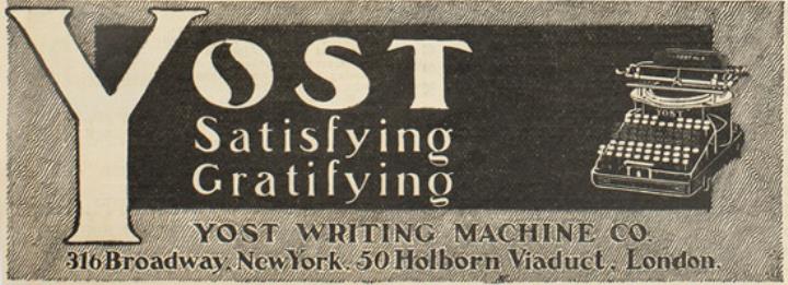 Werbeanzeige für Schreibmaschine Yost monochrom