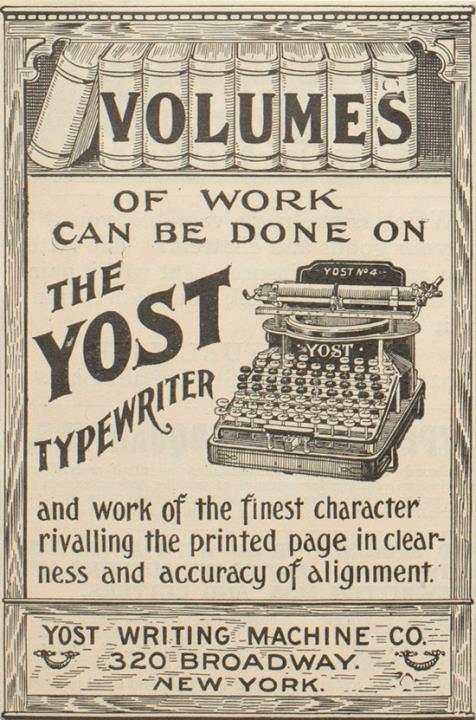 Werbeanzeige für Schreibmaschine Yost; auf Karton geklebt monochrom