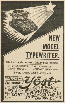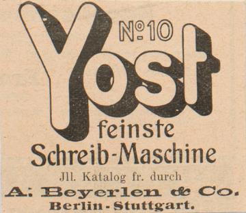 Werbeanzeige für Schreibmaschine Yost 10 monochrom