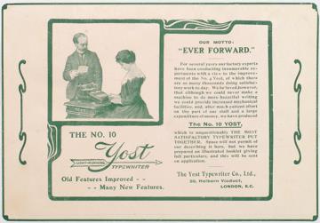 Our Motto: Ever Forward. The No. 10 Light-Running Yost Typewriter