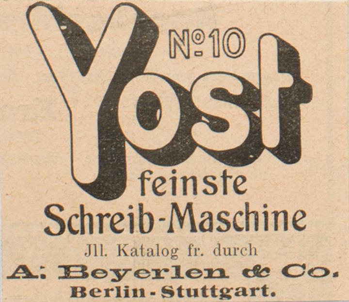 Werbeanzeige für Schreibmaschine Yost 10; auf Karton geklebt monochrom
