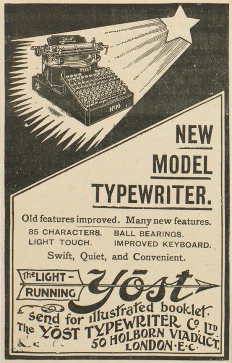 Werbeanzeige für Schreibmaschine Yost monochrom