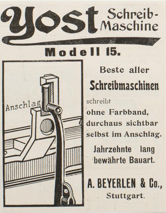 Werbeanzeige für Schreibmaschine Yost monochrom