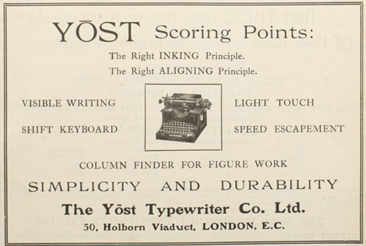 Werbeanzeige für Schreibmaschine Yost monochrom