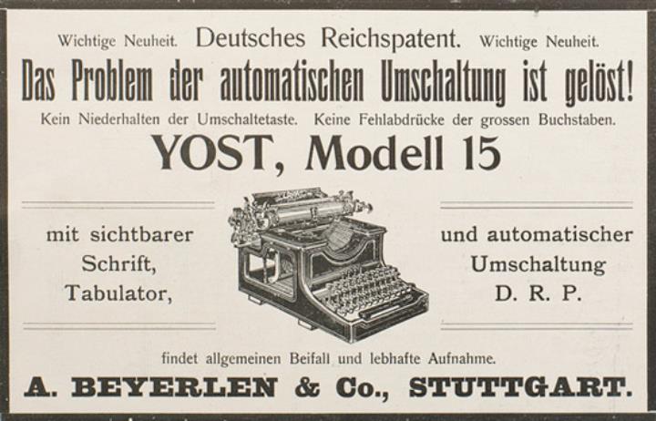 Werbeanzeige für Schreibmaschine Yost monochrom