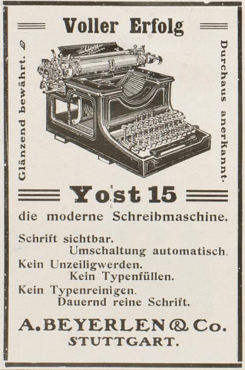 Werbeanzeige für Schreibmaschine Yost monochrom