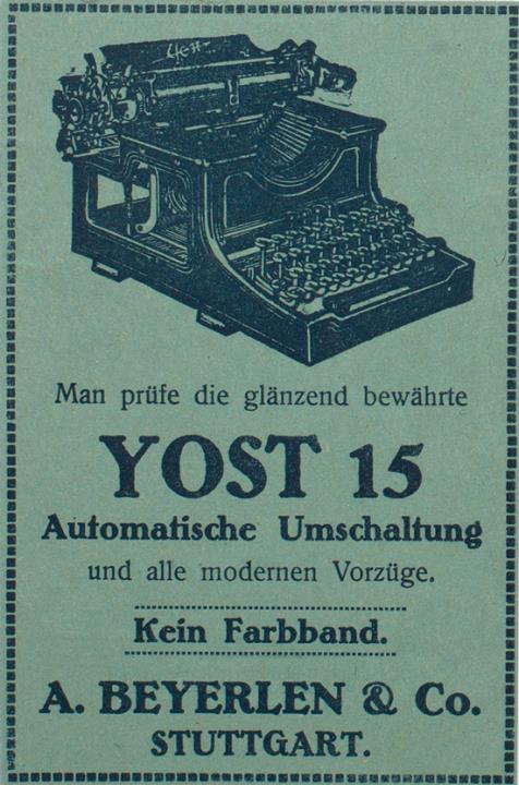 Werbeanzeige für Schreibmaschine Yost monochrom