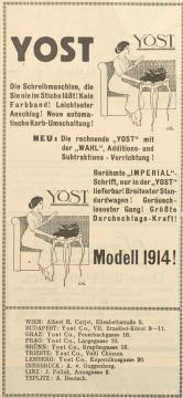 Die Schreibmaschine der Schreibmaschinen Yost Modell 1914