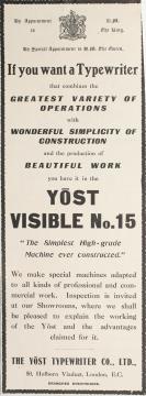 Werbeanzeige für Schreibmaschine Yost 15 monochrom