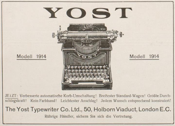 Werbeanzeige für Schreibmaschine Yost monochrom